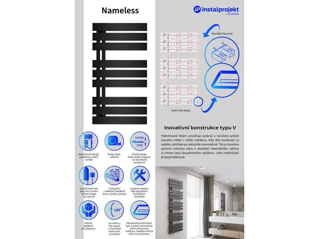 Radiátory jsou dodávány BEZ topné tyče, za rozměrem je pouze uveden vhodný výkon tyče pro patřičný rozměr. Standardní barva C35 white silk (bílá lesklá).