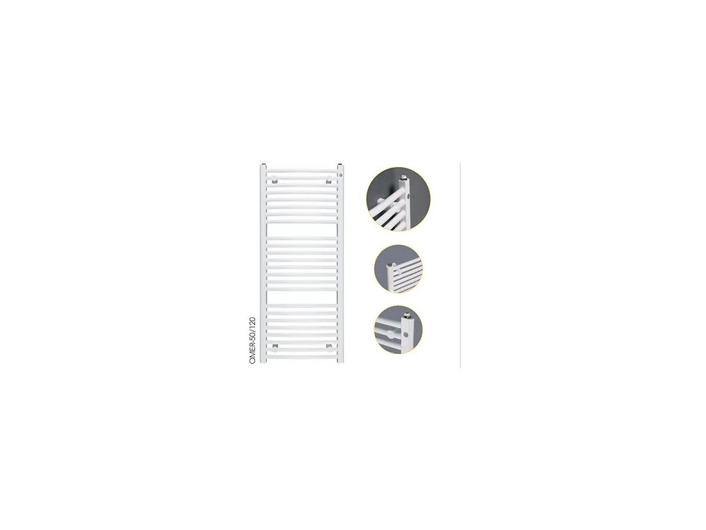 Instalprojekt Koupelnový radiátor OMEGA R Barva - Bílá, Doporučená topná tyč (W) - 400, Rozměr A - 60, Rozměr C - 70, Skutečný rozměr radiátoru (v mm) - 600 × 686 mm, Typ připojení - Středové 50 mm RADOME607035SP
