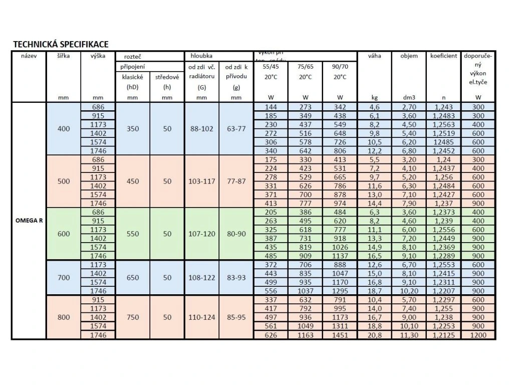 Radiátory jsou dodávány BEZ topné tyče, za rozměrem je pouze uveden vhodný výkon topné tyče pro patřičný rozměr.