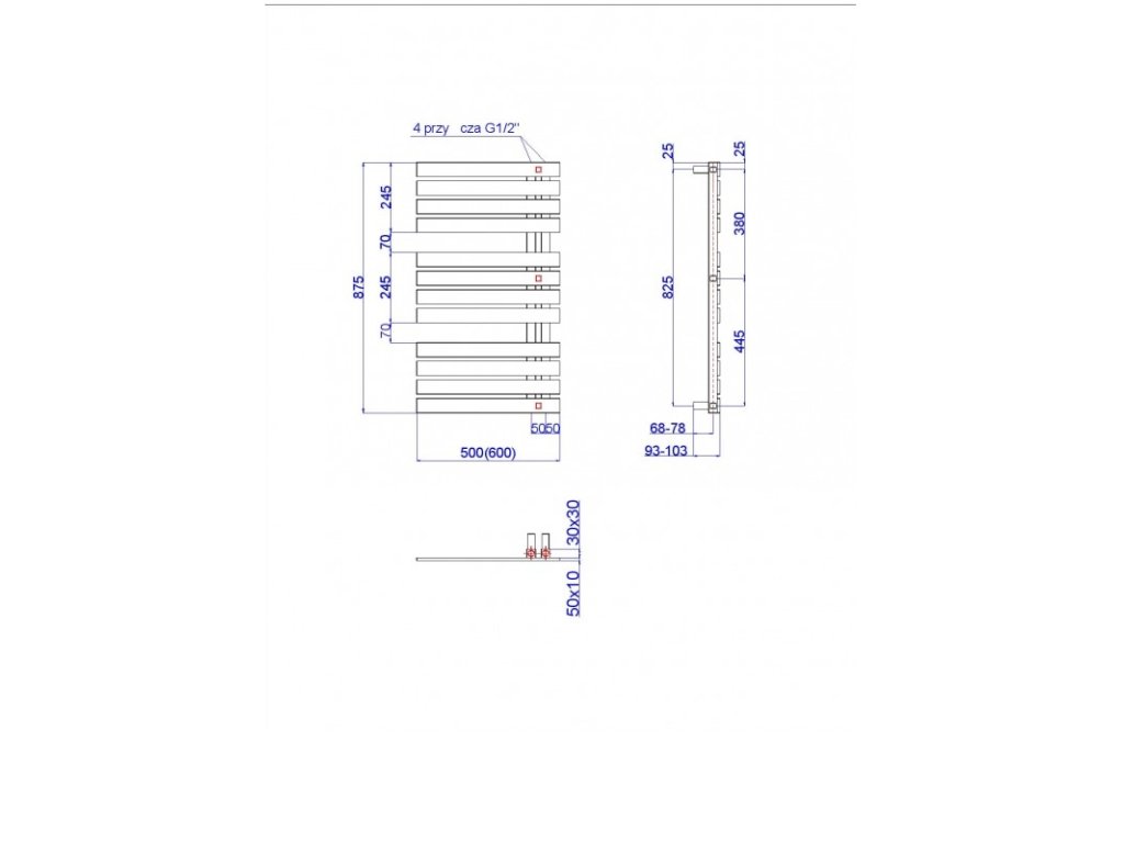 • 500 × 875 mm, výkon 391 W, topná tyč 400 W