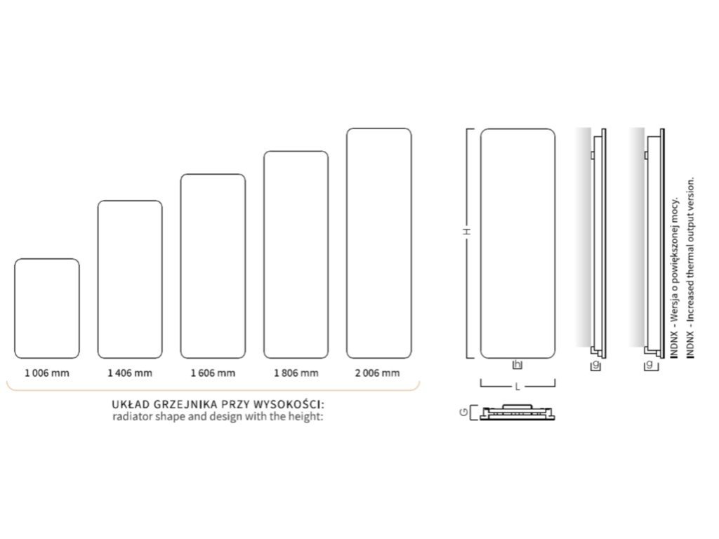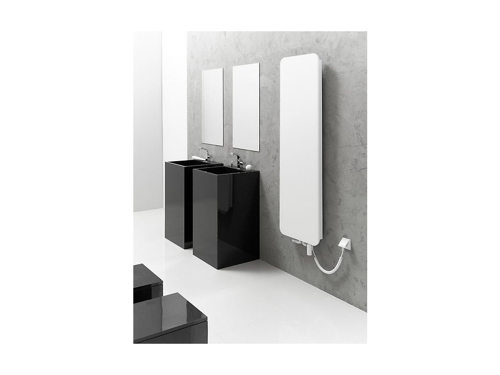 Skleněný a plochý radiátor INDIVI NEW je ideálním doplňkem v každé koupelně. Velké zrcadlo opticky zvětšuje každou místnost a navíc zdůrazňuje  individualitu a krásu odražených objektů. Ideální do velké koupelny nebo předsíně. Standardně je dodáván v barvě C34 white mat pro a bílé sklo L04 (pro vybrané rozměry lze i zrcadlo L01). Pro černé sklo L05 se dodává radiátor v barvě C31 black mat.