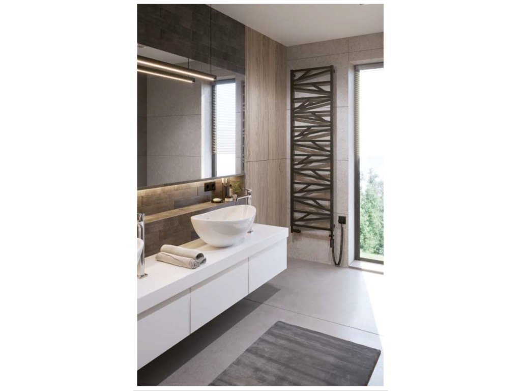 Pronikavě jemná forma spojení hranatých profilů pod různými úhly, působí velmi hravě, ale přitom velmi elegantně. Tvůrčí propojení všech koupelnových stylů. Radiátor TRICK v barvě C31 black mat (černá matná) lze objednat za příplatek i se spodním centrálním připojením. Koupelnové radiátory jsou vhodné pro klasické vytápění i pro použití topné tyče