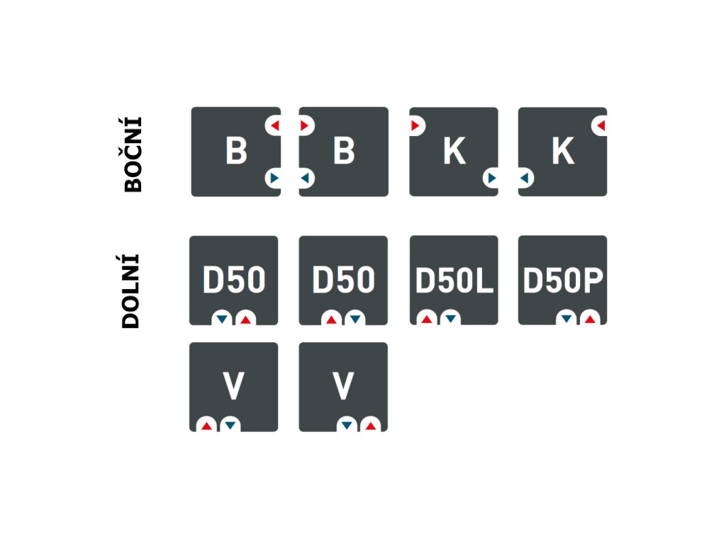 Radiátor je dodáván jak s bočním, tak i se spodním připojením D50. U spodního D50 je připojení standardně umístěno ve středu radiátoru, ale lze i případně nechat vyrobit s umístěním na pravé nebo levé straně radiátoru (nutno uvést do objednávky). Standardní barva C35 white silk (bílá lesklá).