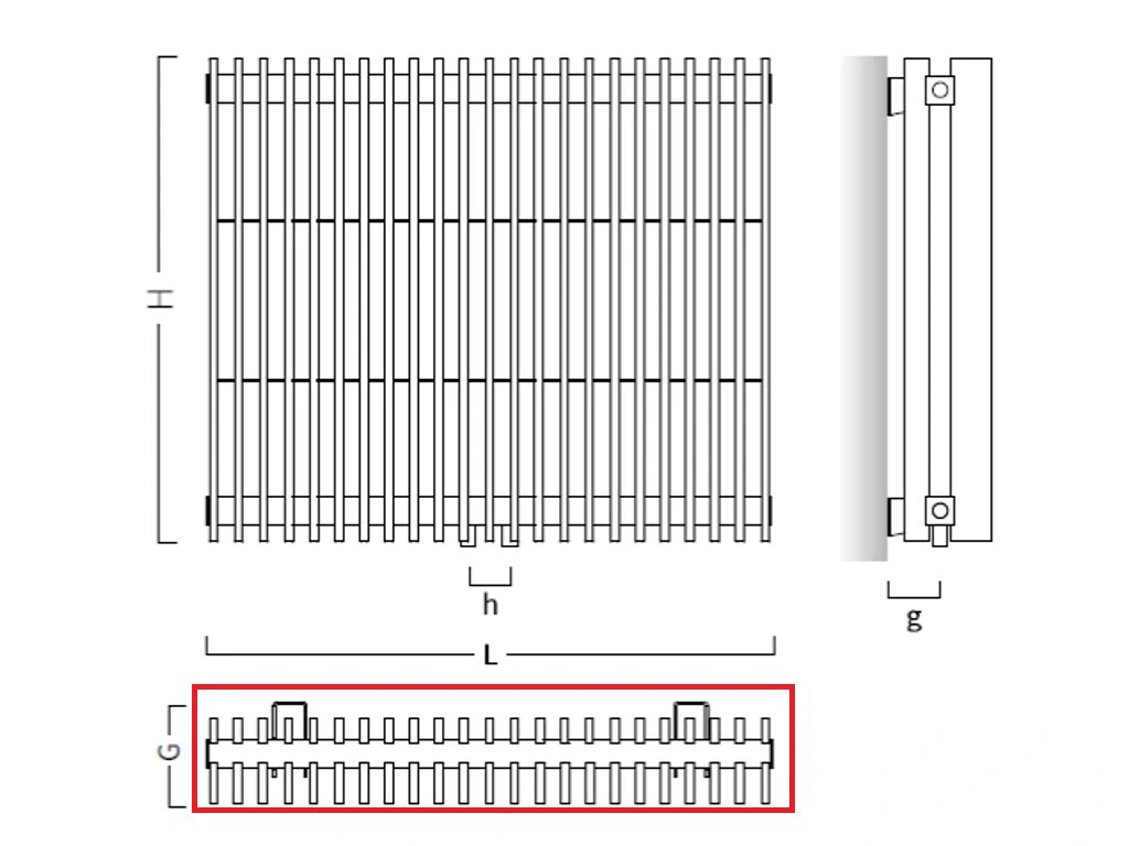 Zadní žebra (u stěny) jsou po celé délce radiátoru.