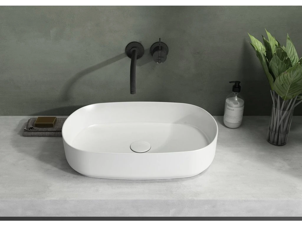 Isvea INFINITY OVAL keramické umyvadlo na desku, 55x36cm, bílá mat 10NF65055-2L