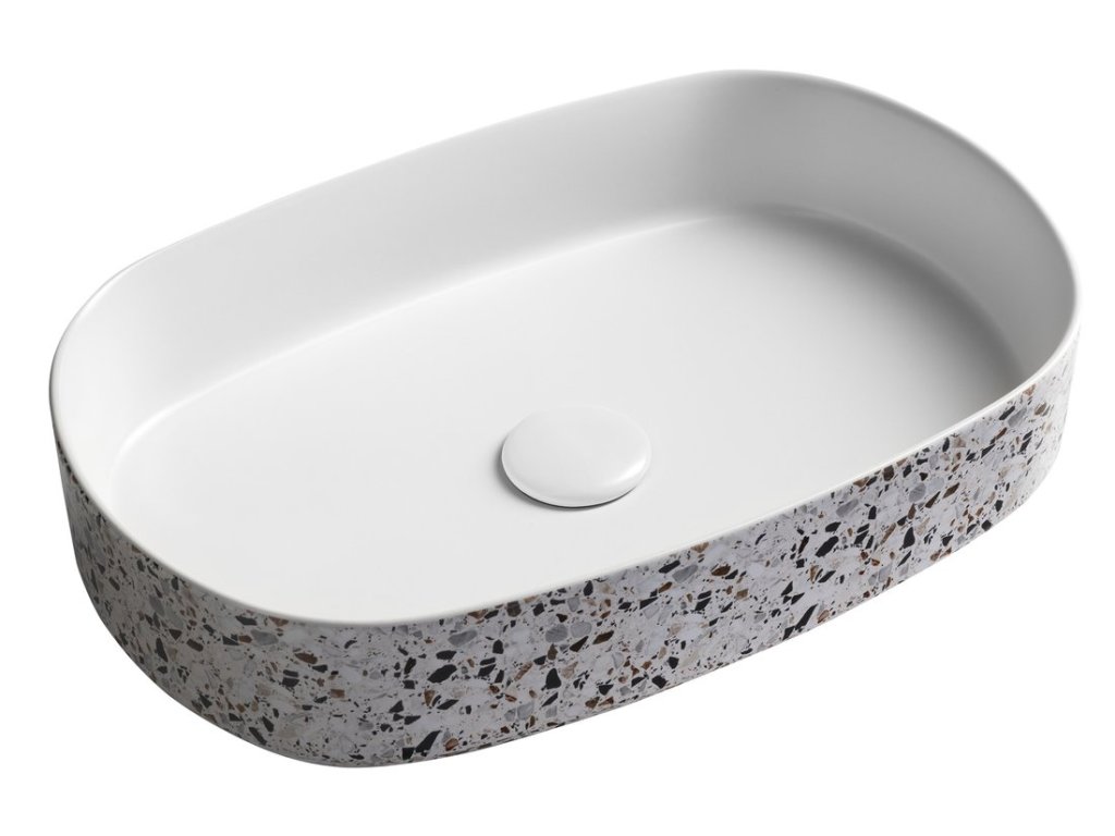 Isvea INFINITY OVAL keramické umyvadlo na desku, 55x36cm, terrazzo 10NF65055-2L-TRZ