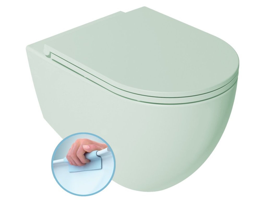 Isvea INFINITY závěsná WC mísa, Rimless, 36,5x53cm, zelená mint 10NF02004-2T