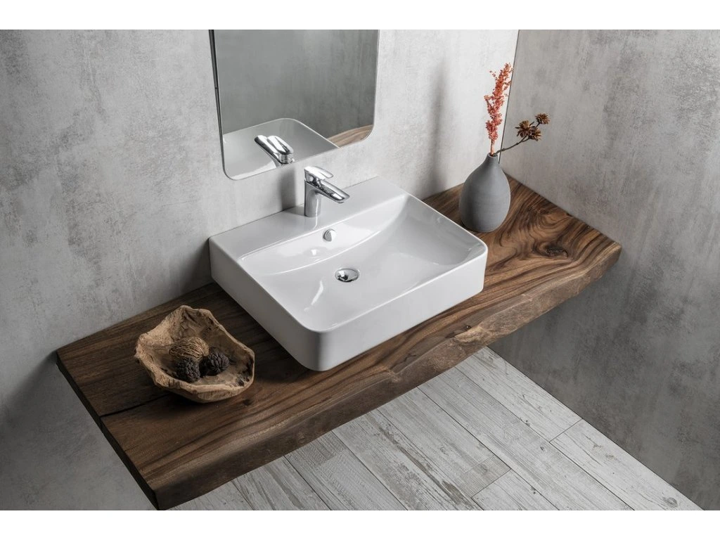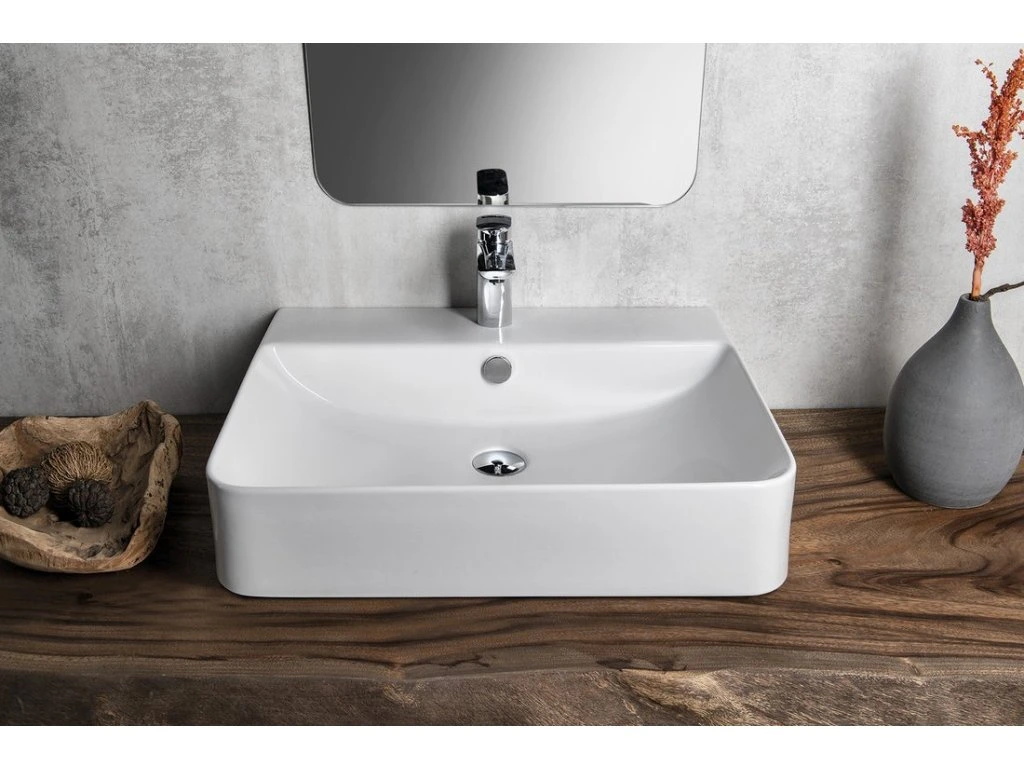 Isvea SOTT AQUA keramické umyvadlo závěsné/na desku, 61x50cm, bílá 10SQ51061