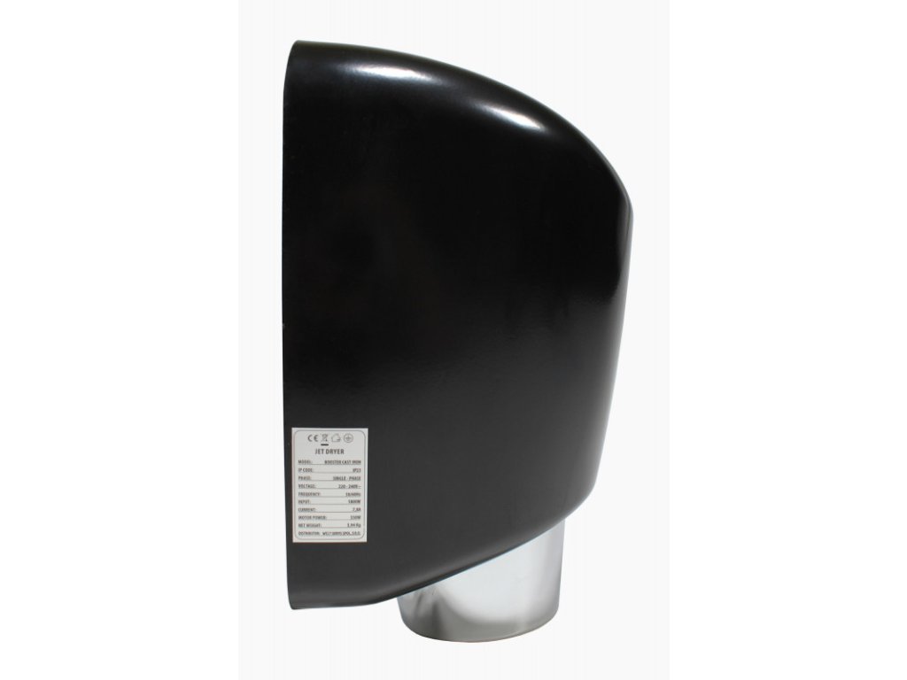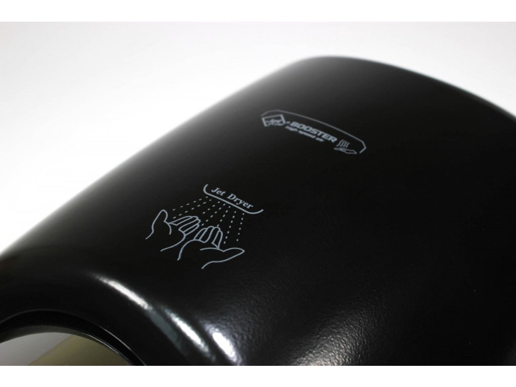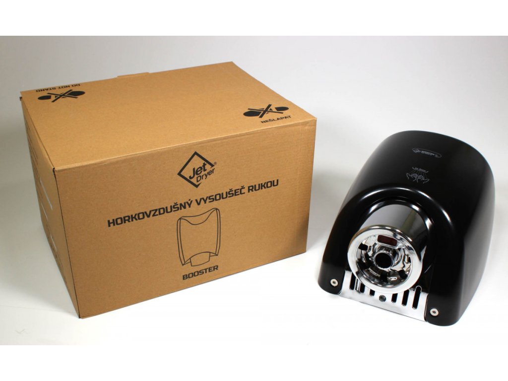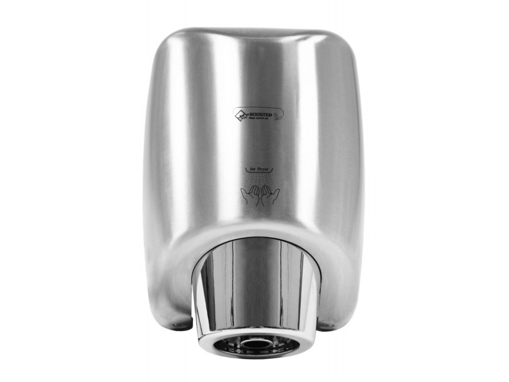 Osoušeč rukou BOOSTER se od jiných osoušečů vyznačuje výraznou pochromovanou tryskou kruhového tvaru. Díky silnému 550 W motoru je vysušení rukou velmi rychlé.