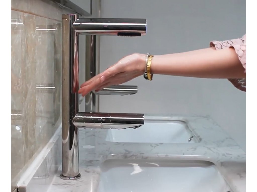 Hygienické umytí a osušení rukou nebylo nikdy jednodušší. Vložením rukou pod vodovodní baterii začne automaticky téct voda o předem nastavené teplotě. Hned nad automatickou baterií se nachází vyústění trysky vysoušeče. Spuštění je také bezkontaktní, stačí vsunout ruce a pohybovat s nimi podobně jako při mytí. Na přední části ramena vysoušeče se nachází podsvětlený kroužek. Kroužek pulzuje bílým světlem, čímž upozorňuje na funkci vysoušeče. Při používání svítí modře.