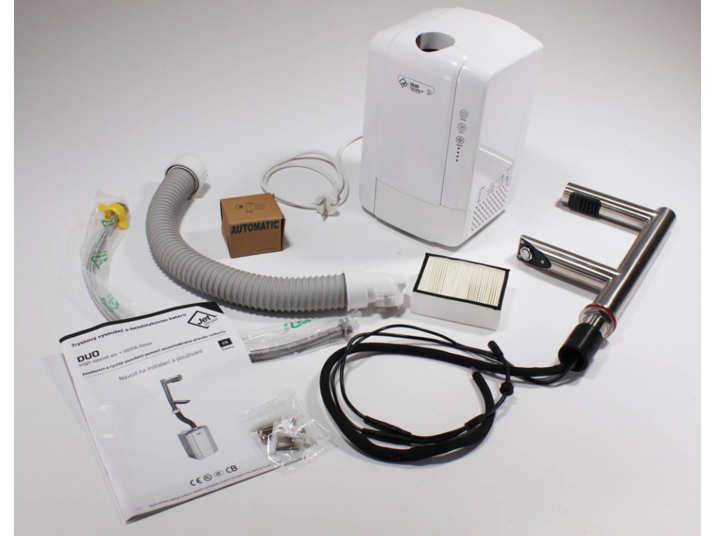 Inovativní design vysoušeče Jet Dryer DUO kombinuje tryskový vysoušeč s automatickou vodovodní baterií. Ruce si tak můžete pohodlně umýt i vysušit na jednom místě – přímo v umyvadle. Jet Dryer DUO je vybaven HEPA filtrem. Vodovodní baterie i vysoušeč je bezkontaktní pro maximálně hygienický provoz. Díky tomu, že má každé umyvadlo svůj vysoušeč, provoz na toaletách je plynulý a bez front.