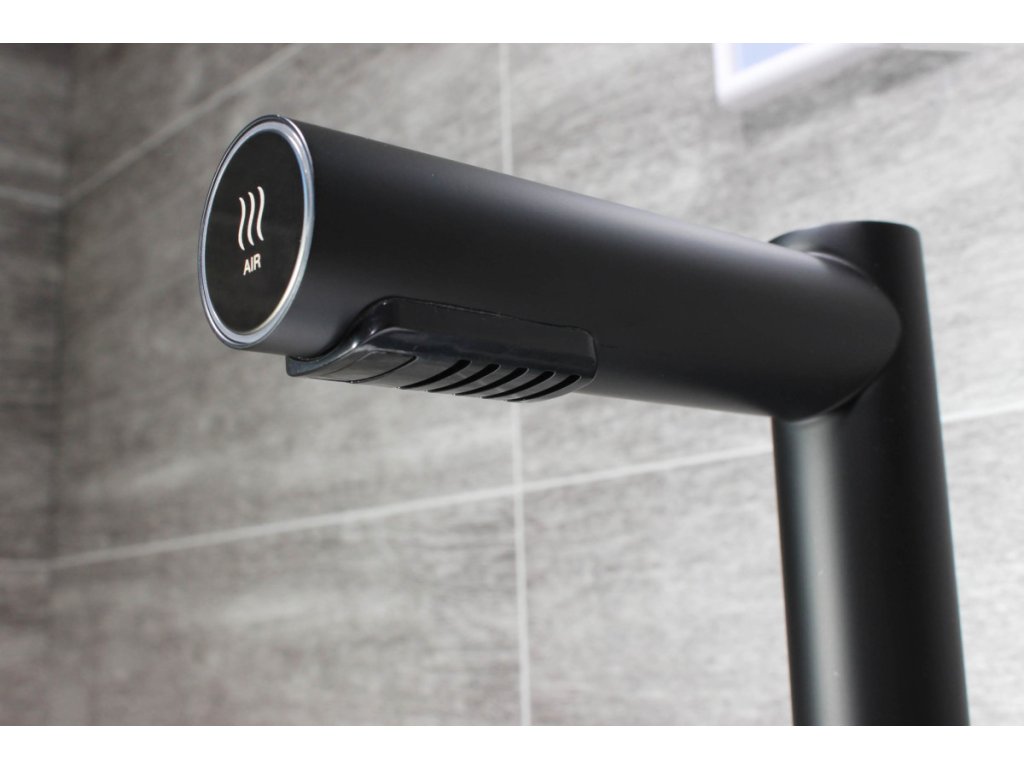 Tělo baterie s vysoušečem ve tvaru písmene F je vyrobeno z kovu nebo kvalitní nerezové oceli. Jednotka vysoušeče je bezpečně ukryta pod umyvadlem, mimo dosah případných vandalů. Vysoušeč tak zároveň zbytečně nezabírá místo.