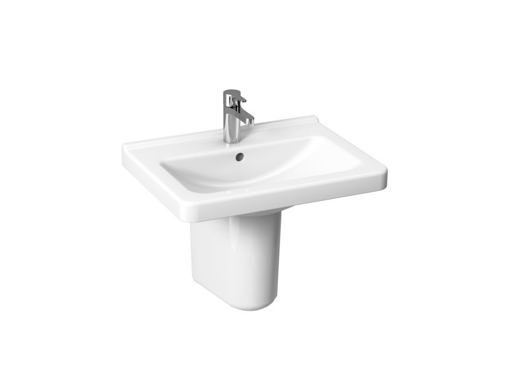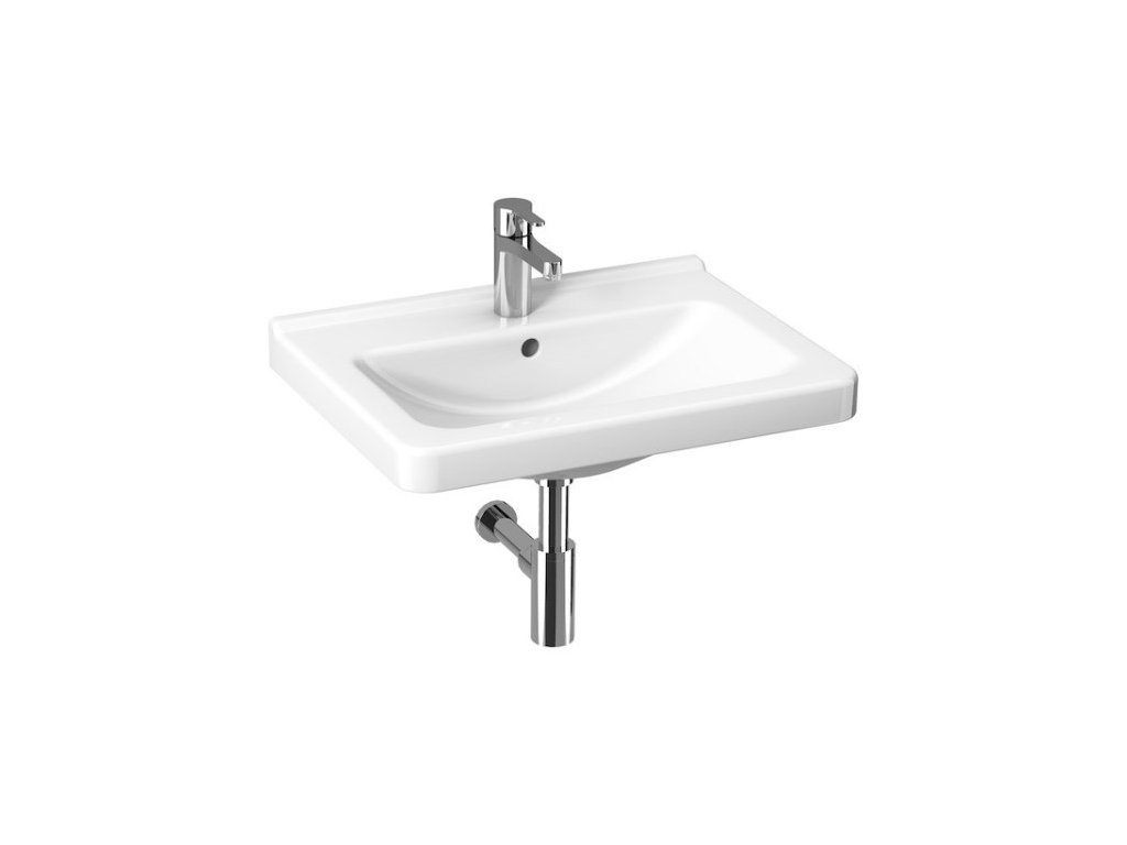 Umyvadlo, rozměr 60x45 cm, materiál sanitární keramika, barva bílá, s přepadem, otvor pro baterii uprostřed. Možno instalovat samostatně na stěnu, v kombinaci s krytem sifonu nebo se skříňkou pod umyvadlo.