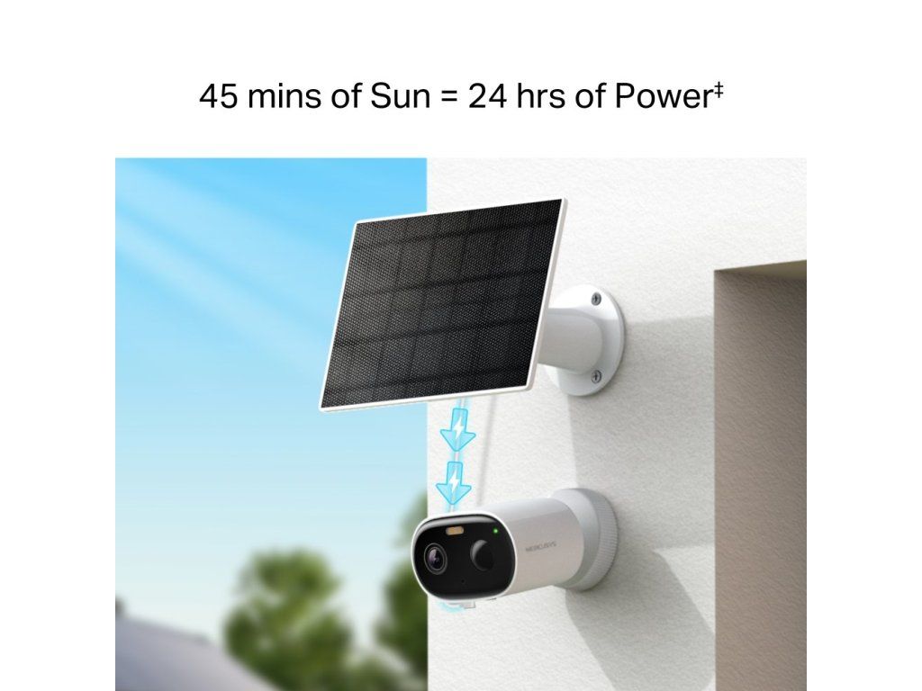 Kamera je vybavena vestavěnou 5200 mAh baterií a solárním panelem, který ji průběžně dobíjí. Přibližně 45 minut slunečního svitu může zajistit až 24 hodin provozu. Díky tomu kamera poskytuje nepřetržitou ochranu bez nutnosti častého nabíjení.