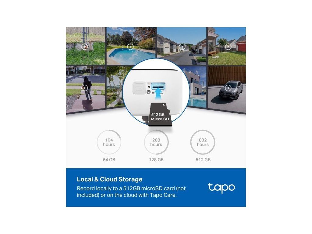 - Úložiště: microSD karta až 512 GB (není součástí balení), cloud Tapo Care