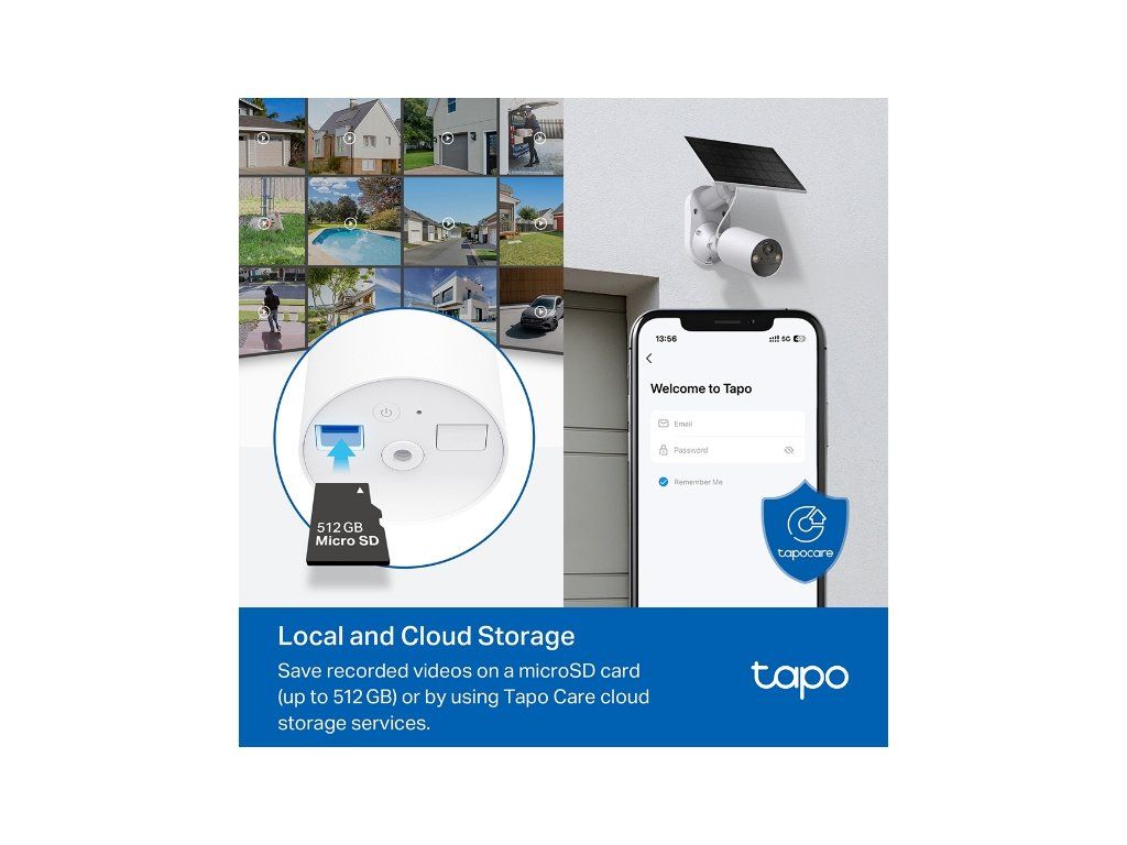 Pořízené záznamy ukládáte na kartu microSD o kapacitě až 512 GB. Další možností je ukládání dat na cloudové úložiště Tapo Care, které poskytne neomezený prostor pro vaše bezpečnostní záznamy.