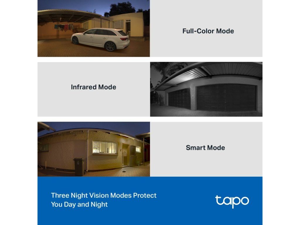 Bezpečnostní kamera Tapo C510W vidí ve dne v noci bez sebevětších obtíží, neboť má plnobarevný noční režim s dosahem až na vzdálenost 30 m. Máte tak jistotu toho, že bude vaše nemovitost v bezpečí 24 hodin denně po 7 dní v týdnu, jelikož jí neunikne žádný důležitý detail. Z pořízených záznamů v nočním režimu tak snadno rozpoznáte charakteristiky postavy, vlastnosti chůze, obličejové rysy, tetování či jiná klíčová vodítka, která jsou potřebná ke zjištění totožnosti viníka, usvědčení pachatele a následné vymáhání práva.