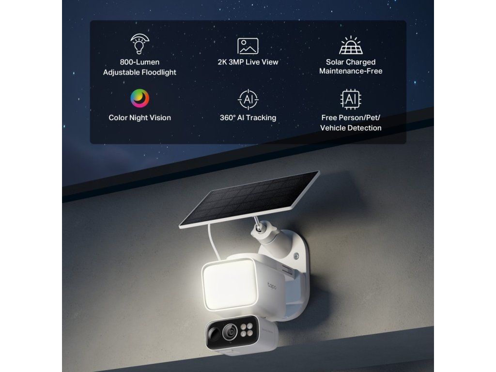 Zabezpečte svůj domov chytře a bez kabelů s kamerou TP-Link Tapo C615F KIT se solárním napájením a 800lm světlometem. Otočná 2K kamera s chytrou detekcí osob, zvířat a vozidel poskytuje špičkový přehled i v noci, bez nutnosti elektrické zásuvky.