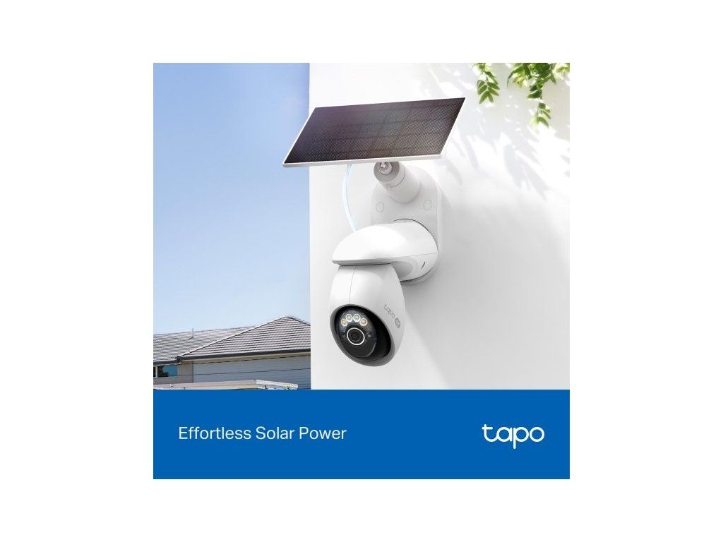 Kameru napájí dobíjecí baterie s kapacitou 10 000 mAh. Součástí balení je také solární panel TP-Link Tapo A201. Po připojení ke kameře stačí přibližně pouhých 45 minut na přímém slunečním světle pro celodenní provoz.