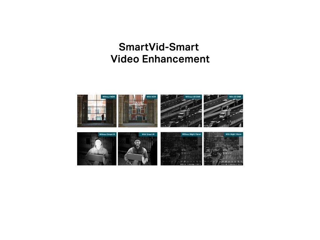 Chytrý infračervený přísvit Smart IR ve tmě brání podexponování objektů ve velké vzdálenosti nebo naopak – přeexponování v blízkosti kamery. Zbavíte se nepříjemného přesvícení a podsvícení. Dopřejete si pohled na detailní obraz a prohlédnete si příchozí návštěvníky.