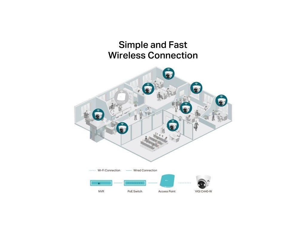 Zajistěte si ochranu svého pozemku s vnitřní kopulovou síťovou kamerou VIGI C440-W od značky TP-Link. Kamera sleduje dění kolem a poskytne vám čistý barevný obraz i za temných nocí. Vaše firma zůstane v co největším bezpečí. VIGI C440-W s plnobarevným nočním viděním s maximálním rozlišením 4 MPx monitoruje okolí díky objektivu s velkou světelností, senzoru s vysokou citlivostí a přídavnému bílému osvětlení. Kameru navíc jednoduše připojíte k Wi-Fi.