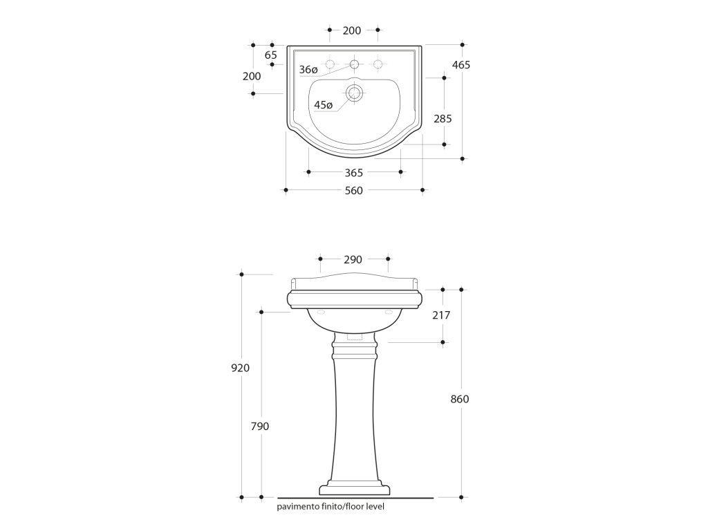 Kerasan RETRO keramické umyvadlo 55x45cm, 3 otvory, bílá 104501-3