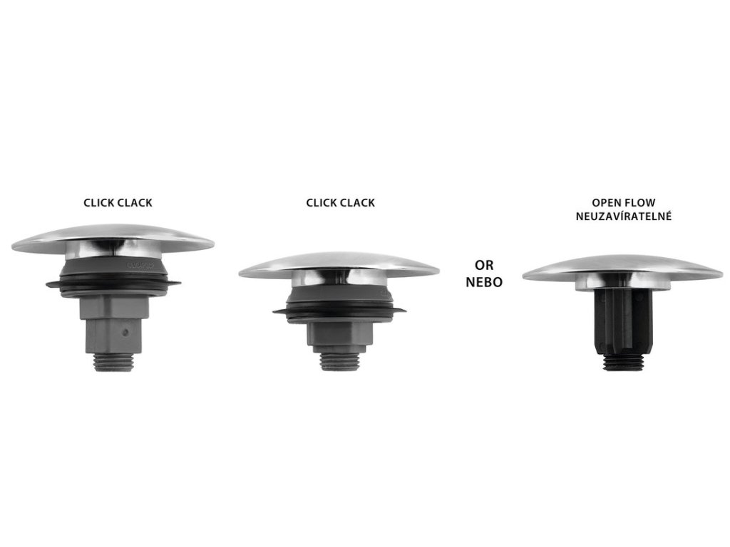 Jedná se o moderní variantu mechanismu uzavírání výpustí do umyvadel a van. Již nemusíte přemýšlet, kam odložit gumovou zátku, nebude překážet řetízek, odpadne nepohodlné ovládání zátky pomocí táhla u baterie. Systém Click Clack je ovládán pouhým stlačením zátky.
