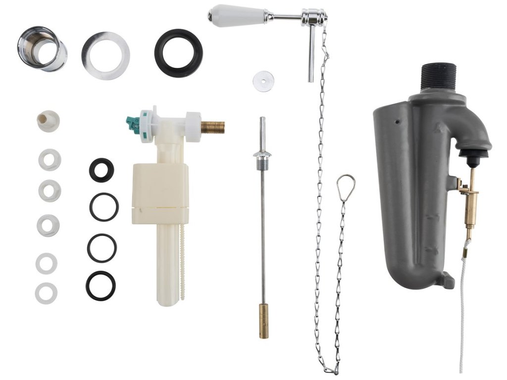 Balení splachovacího mechanismu obsahuje horní upevňovací matku k trubce nádržky.