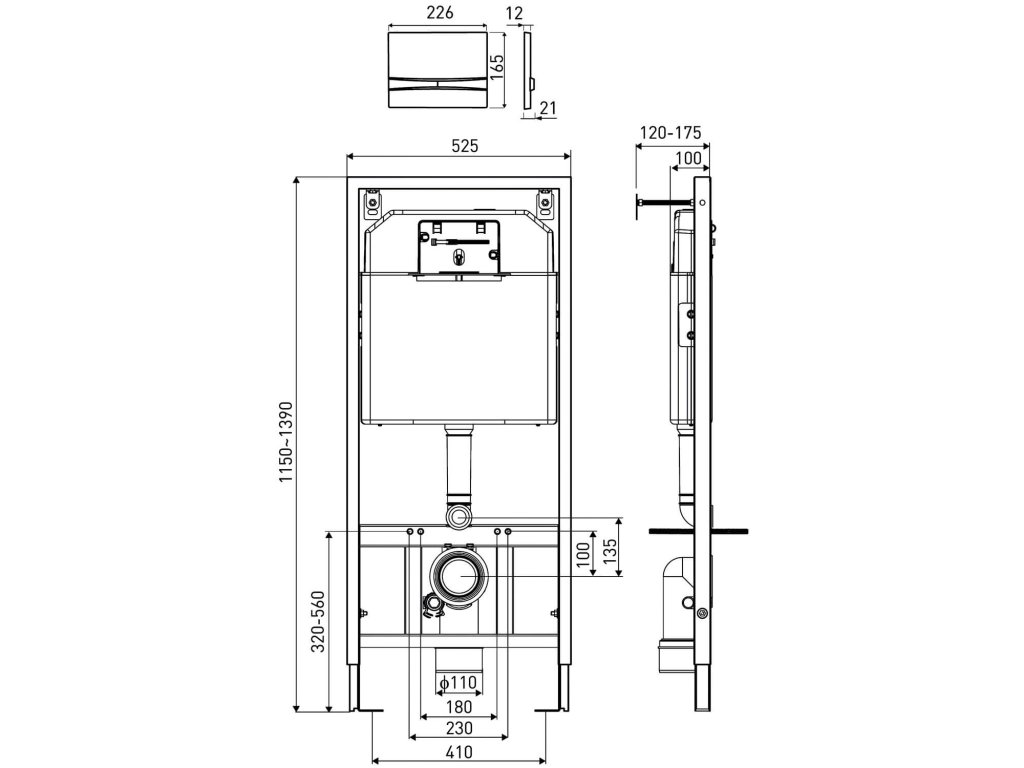 - rám je přizpůsoben k instalaci mísy s montážními rozestupy 180 a 230 cm