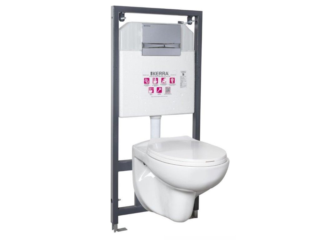 - součástí je splachovací modul, závěsná mísa, bílé splachovací tlačítko, šrouby k připevnění mísy