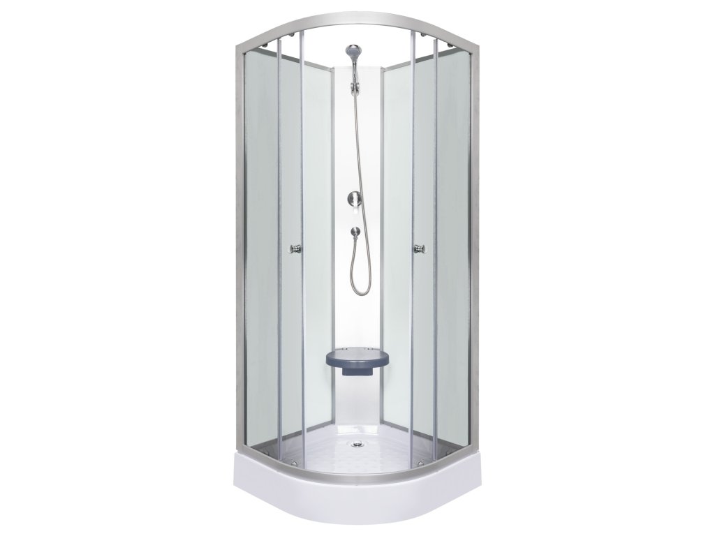 • základní vybavení v hliníkovém středovém panelu - směšovač baterie, sprchová hadice hlavice, sklopné sedátko