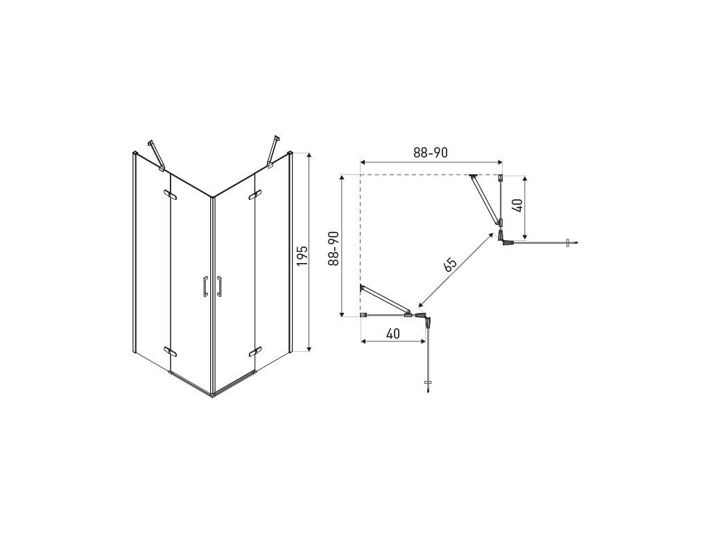 - rozměry sprchového koutu - 90 x 90 x 195 cm