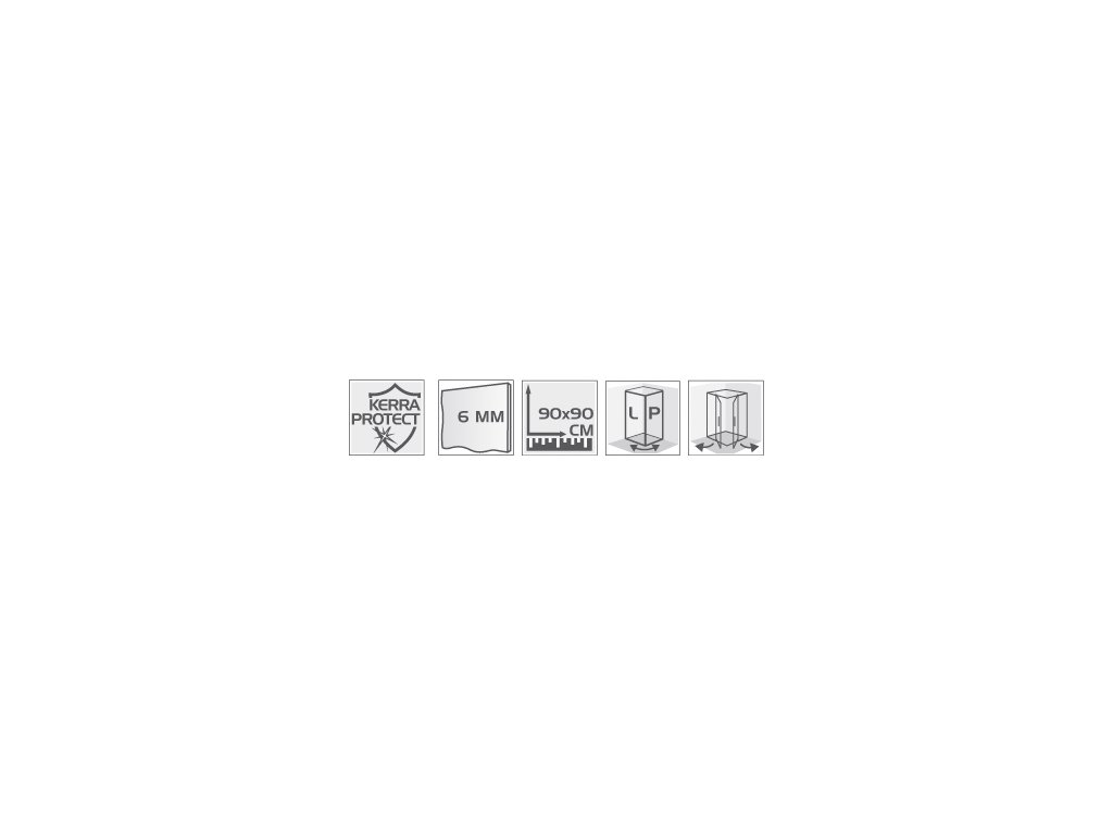 - bezpečnostní tvrzené sklo o síle 6 mm čiré, ošetřeno nátěrem PROTECT pro ochranu před usazováním nečistot a viditelností kapek vody