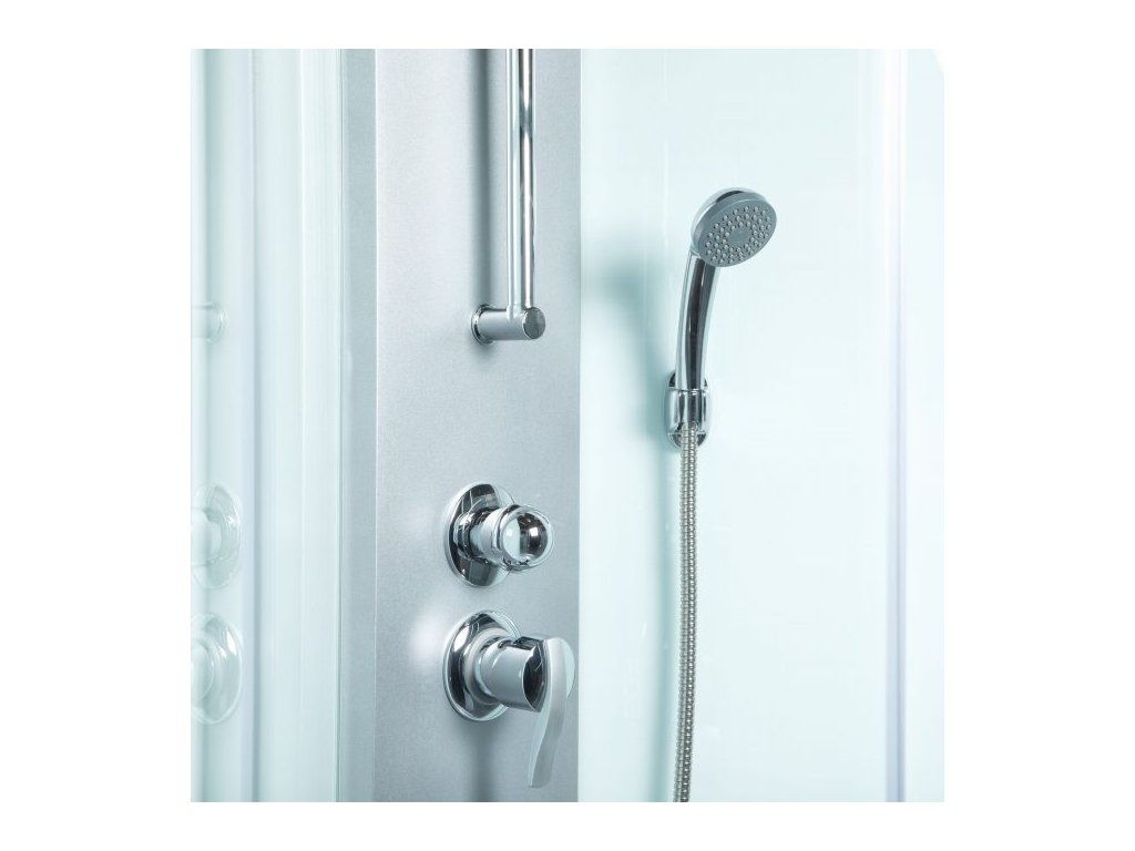 - bílé provedení masážního boxu bez stropu o rozměrech 90x90x225 cm - výška je uvedena včetně horní sprchy