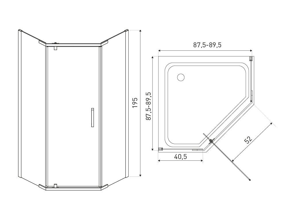 Kerra Kora 90x90 pětiúhelníkový sprchový kout, 906