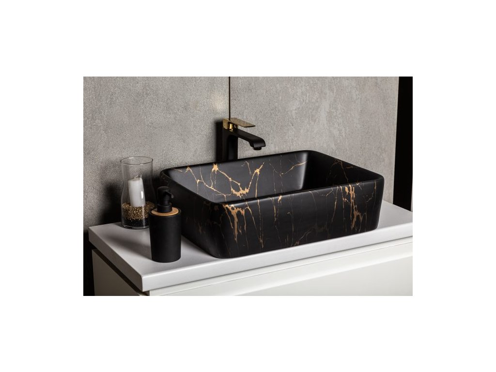 - kvalitní glazovaná keramika s povrchovou úpravou černozlatý mramor