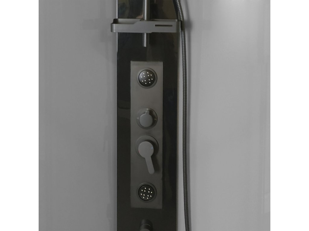 O komfort se starají dvě masážní trysky, dešťová sprcha o průměru 23 cm i tříproudová ruční sprcha. Na estetice boxu se podílí také dvě robustní černá madla. Skla masážního boxu mají anticalc úpravu, která snižuje usazování vodního kamene a usnadňuje údržbu.