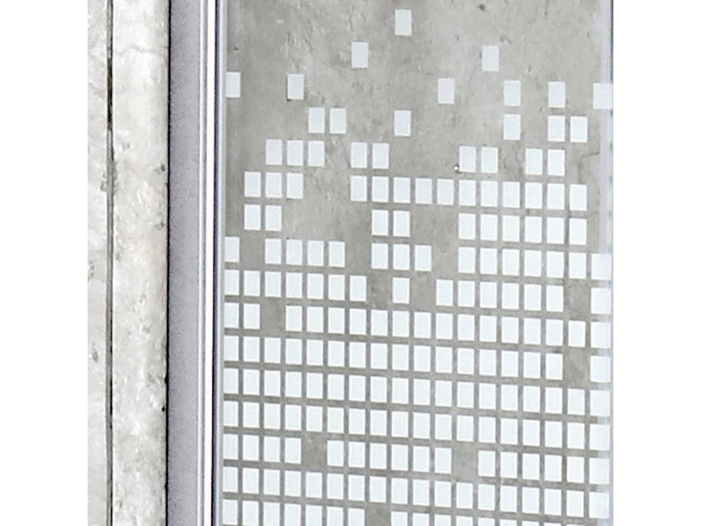 - bezpečnostní tvrzené sklo s dekorem bílých malých čtverečků