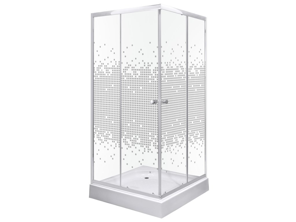 - bezpečnostní tvrzené sklo s dekorem bílých malých čtverečků