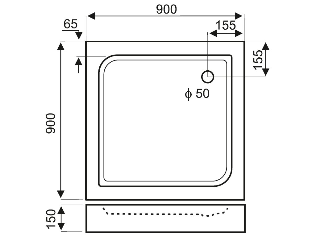 Velmi praktická a kvalitní sprchová čtvercová vanička, vyrobena z kvalitního sanitárního akrylátu (vyztužen pryskyřicí).