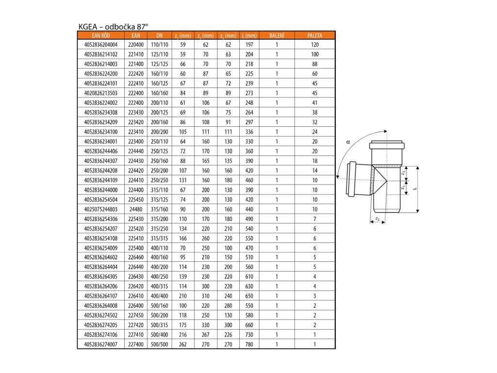 KG KGEA odbočka odpadní DN125/110, 87°, PVC, oranžová, 221410