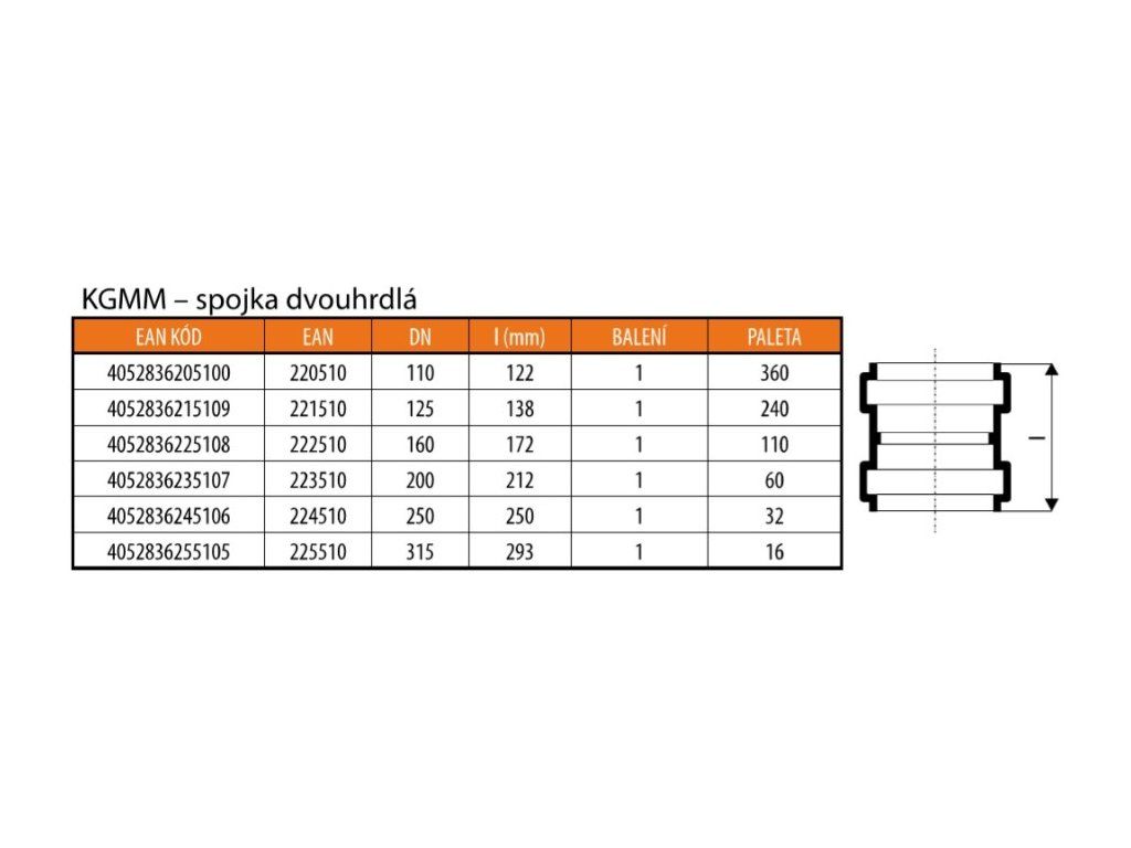 KG KGMM spojka dvouhrdlá DN125, PVC, oranžová, 221510
