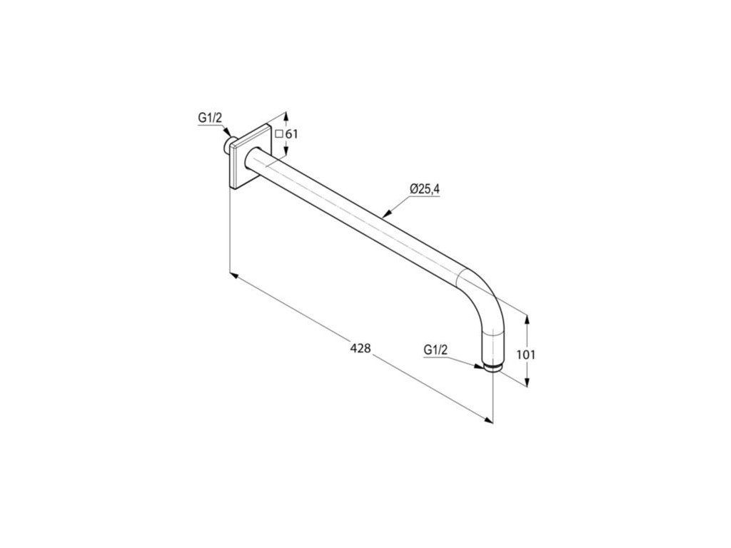 V bílé barvě toto rameno dobře ladí s bílými hlavovými sprchami, kterých má značka Kludi na výběr hned několik. Rameno má délku 428 milimetrů a disponuje posuvnou čtvercovou rozetou 61 x 61 mm. Na obou koncích se nachází standardní trubkový závit G 1/2".
