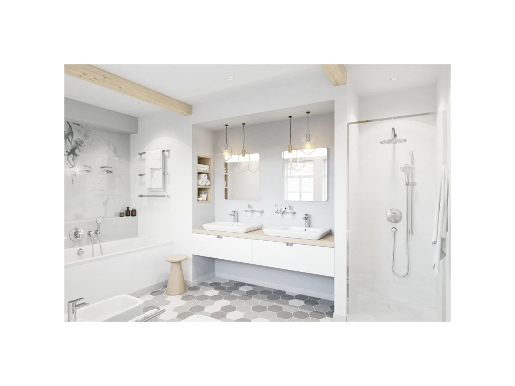 V sadě Kludi Freshline nechybí ani nezbytné příslušenství. Samozřejmostí je sprchová tyč o délce 600 mm, horizontálně a vertikálně nastavitelný jezdec a upevňovací materiál.