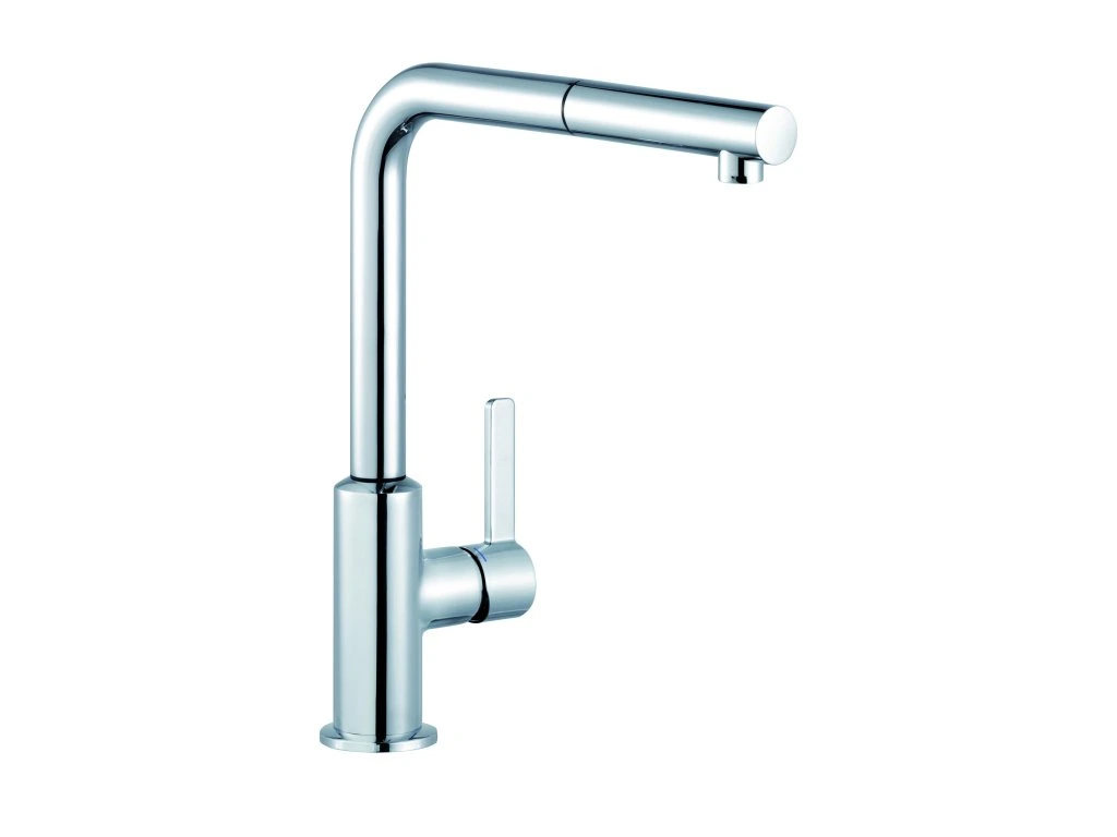 Chromovaná páková dřezová baterie Kludi L-ine S je vaše pravá ruka v kuchyni. Oslní především praktickým vytažitelným otočným výtokem. Tento nápad usnadní mytí nádobí, čištění potravin, napouštění vody do hrnce a další činnosti.