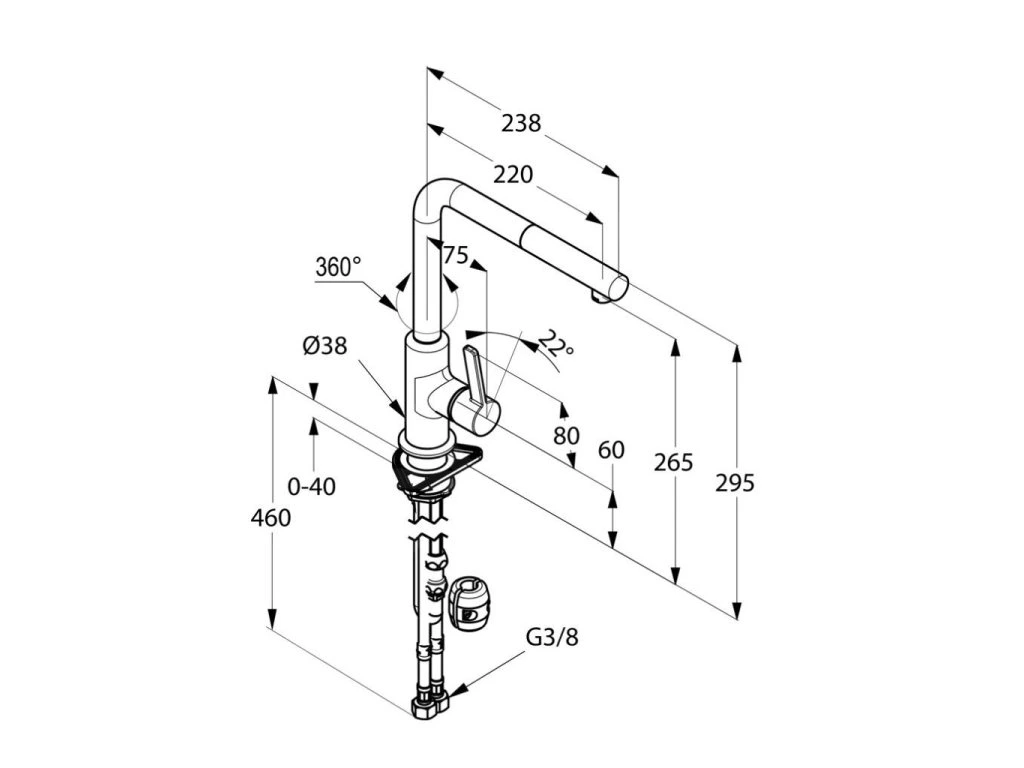 - flexibilní přípojky G 3/8