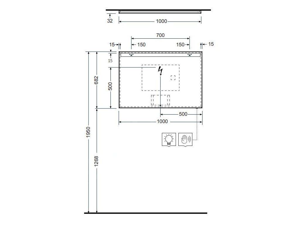 KLUDI LUMA zrcadlo s LED osvětlením a vyhříváním, 100x68 cm, dotykový senzor, 17SP0700