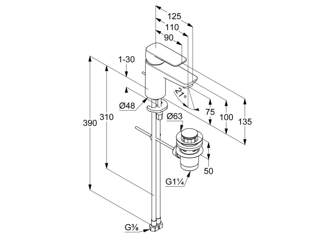 KLUDI PURE&STYLE umyvadlová baterie, s výpustí, EcoPlus, chrom, 403880575WR4