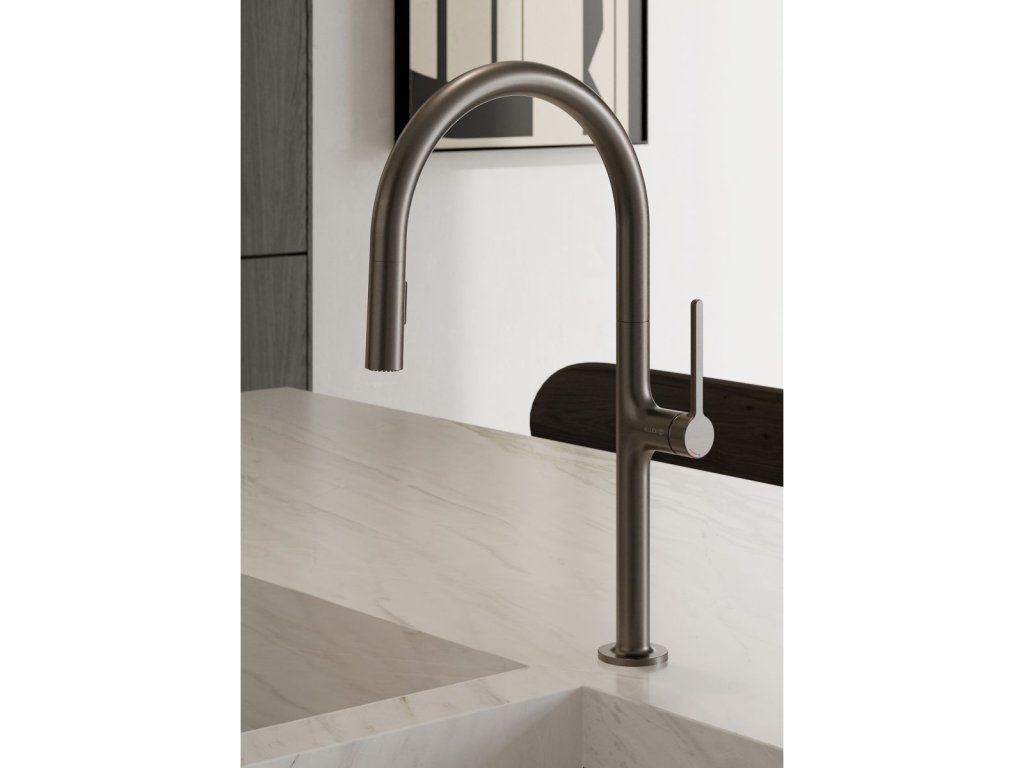 KLUDI REEF dřezová baterie s výsuvnou sprškou, broušený Gunmetal, 50851N275