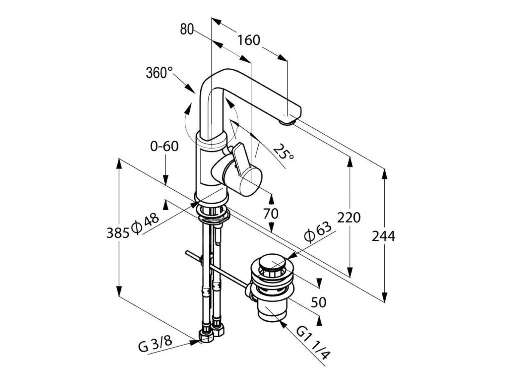 KLUDI ZENTA páková umyvadlová baterie, s otočným výtokem a výpustí, chrom, 420250575